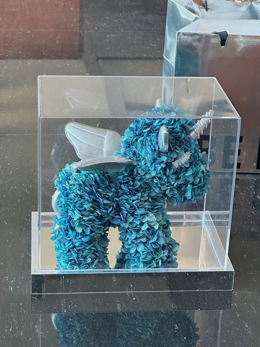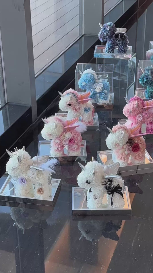 Timeless Artistry in Bloom: The Preserved Flower Unicorn Sculpture. An Everlasting Masterpiece for Birthday & Celebrations.