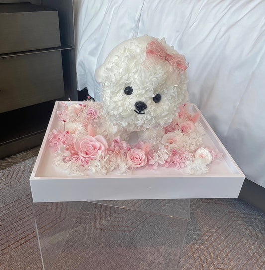 Preserved flowers and West Highland Terrier dog combination garden eternal rose gift birthday gift