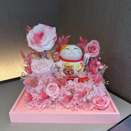 Preserved flower lucky cat and preserved flower garden opening housewarming gift rose lucky ornaments