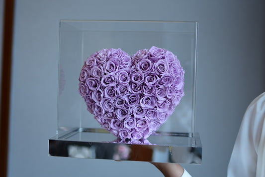 Eternal Mirror Rose in Heart Shape - Real Preserved Rose Flower for Valentine's Day, Anniversary, Wedding Gift for HerPurple Rose