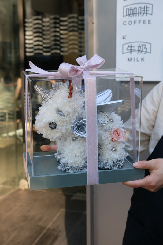 Cute puppy preserved flower doll gift high-end luxury acrylic gift box for daughter and child gift