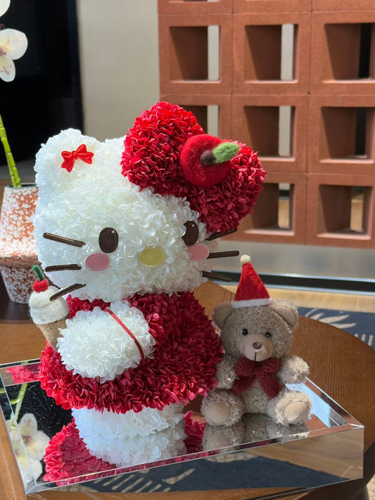 Cute Hello Kitty Doll Made of Preserved Flowers - Eternal Bloom Decoration for Home & Room