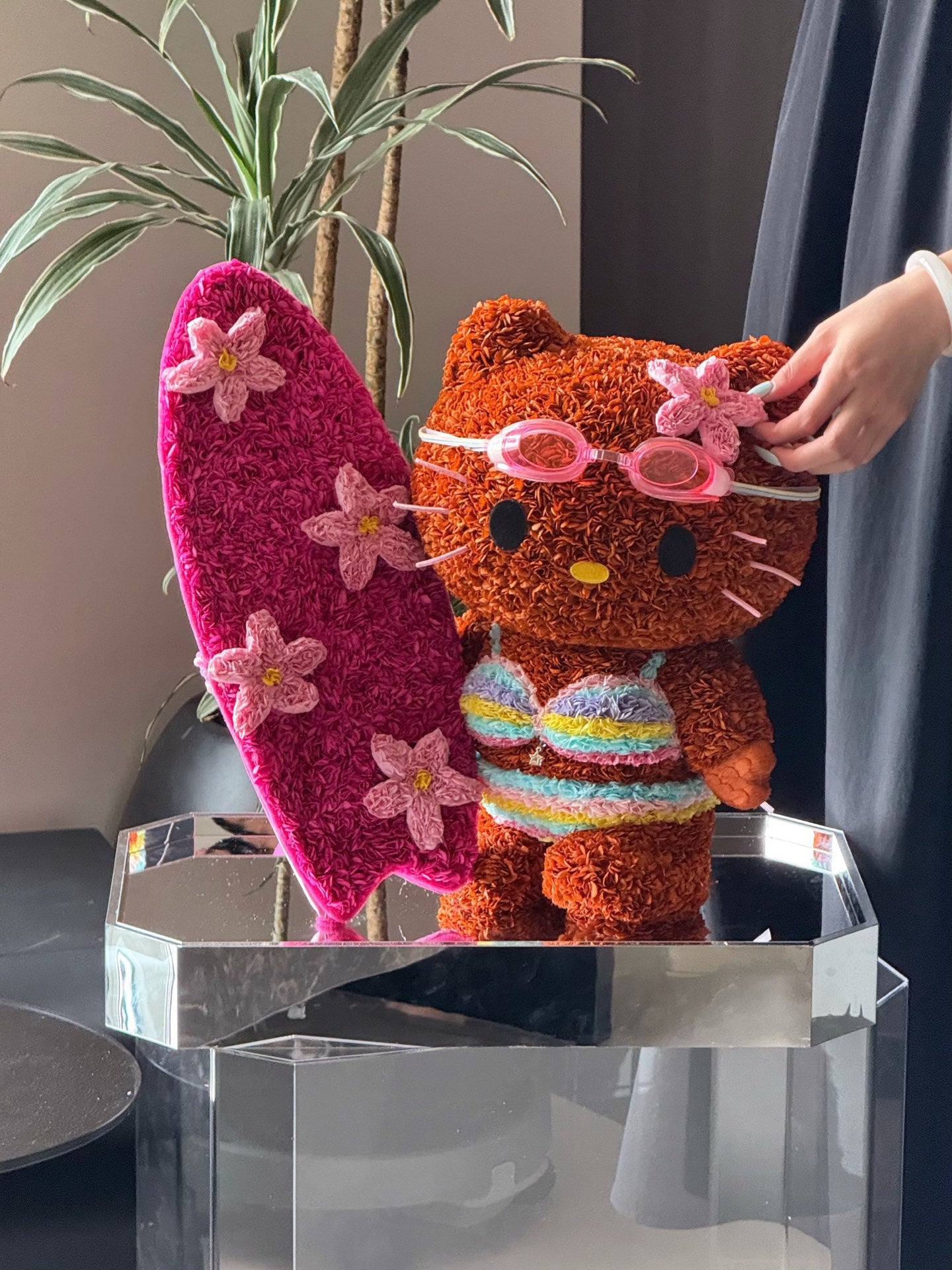 Cute Hello Kitty Doll Made of Preserved Flowers - Eternal Bloom Decoration for Home & Room