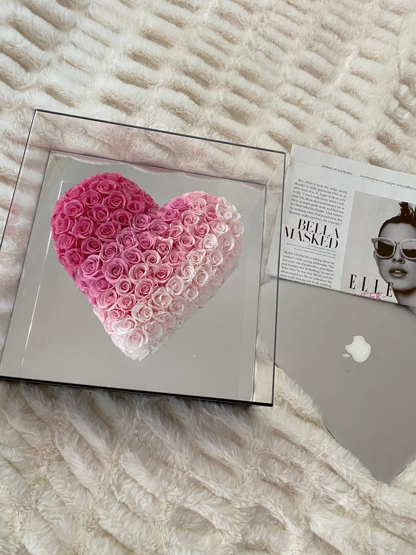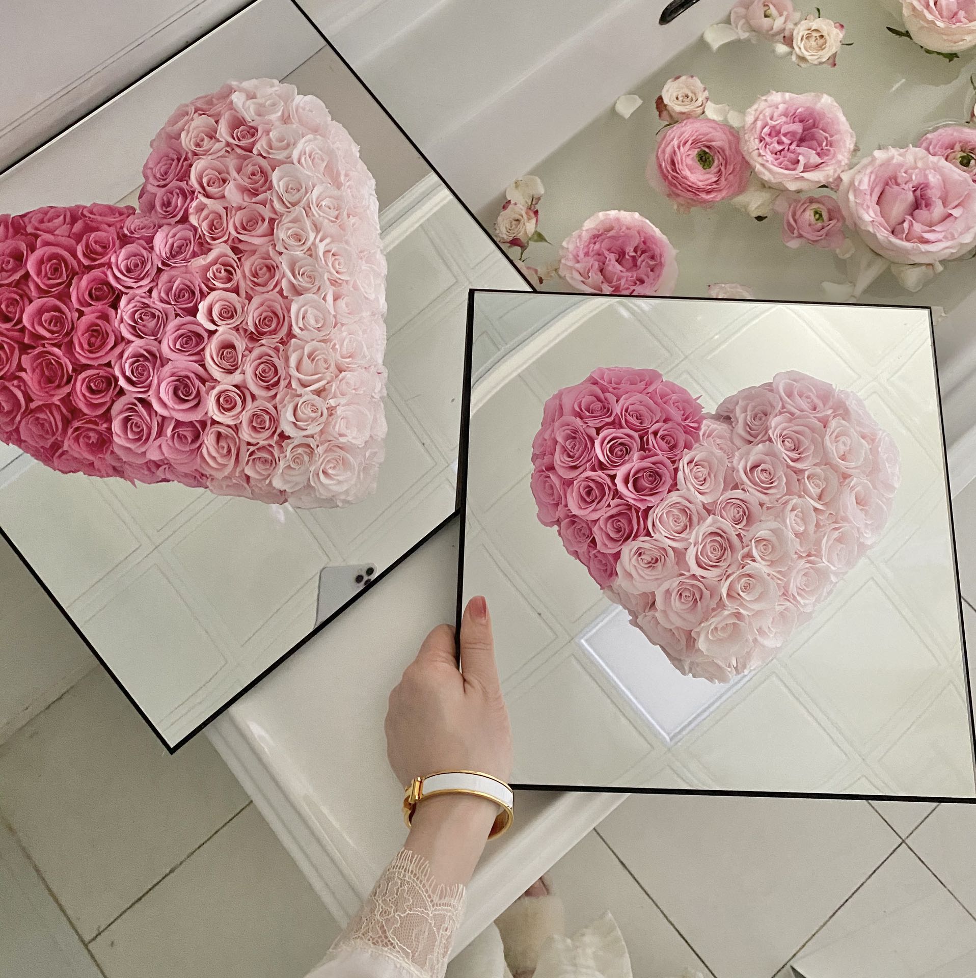 Everlasting Preserved Rose Mirror Heart - Forever Blooming Valentine's Gift for Her, Self-Adhesive Romantic Decor