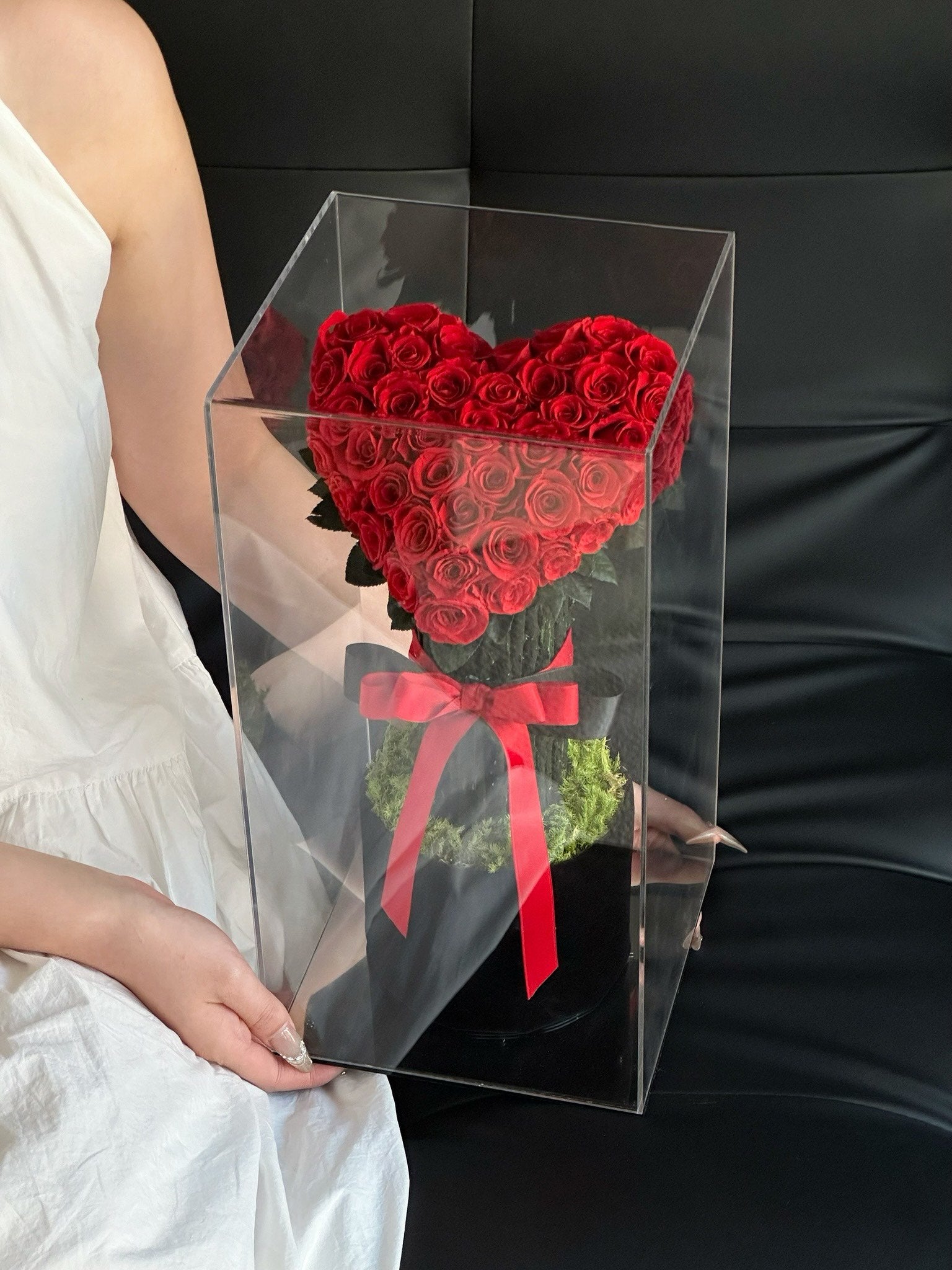 Heart-shaped red roses that never fade - eternal roses preserved flowers for her unique Valentine's Day gift for girlfriends and lovers