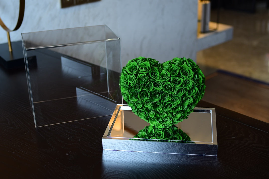Mirror Acrylic Rose Heart Gift - Preserved Eternal Rose Flower in Glass Dome for Women, Girlfriend, Wife