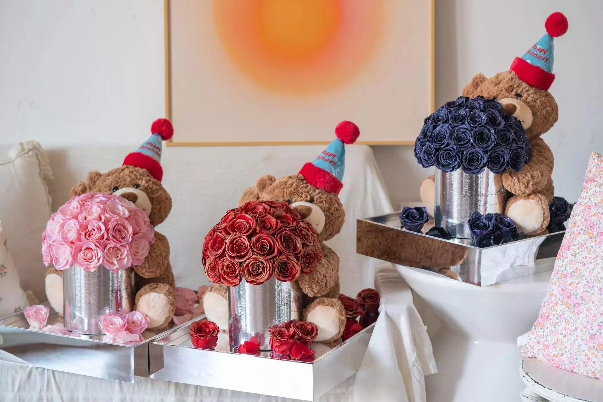 Colors: Pink, Red, Blue