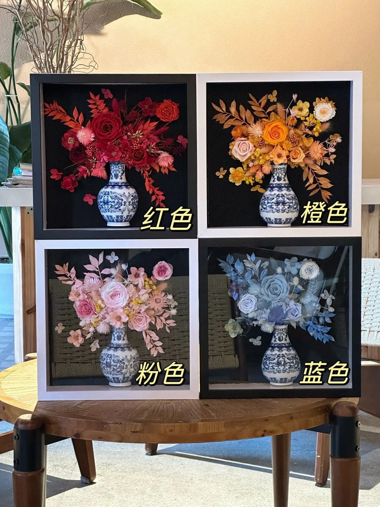 Blue and white porcelain vase preserved flower photo frame DIY handmade preserved flower gift for Mother's Day birthday gift