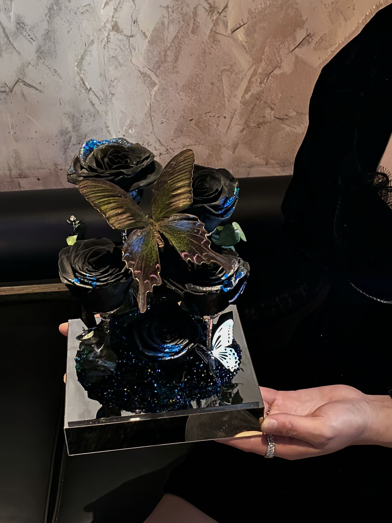 Preserved Rose and Real Butterfly Specimen Acrylic Gift Box Permanent Ornament Valentine's Day Gift