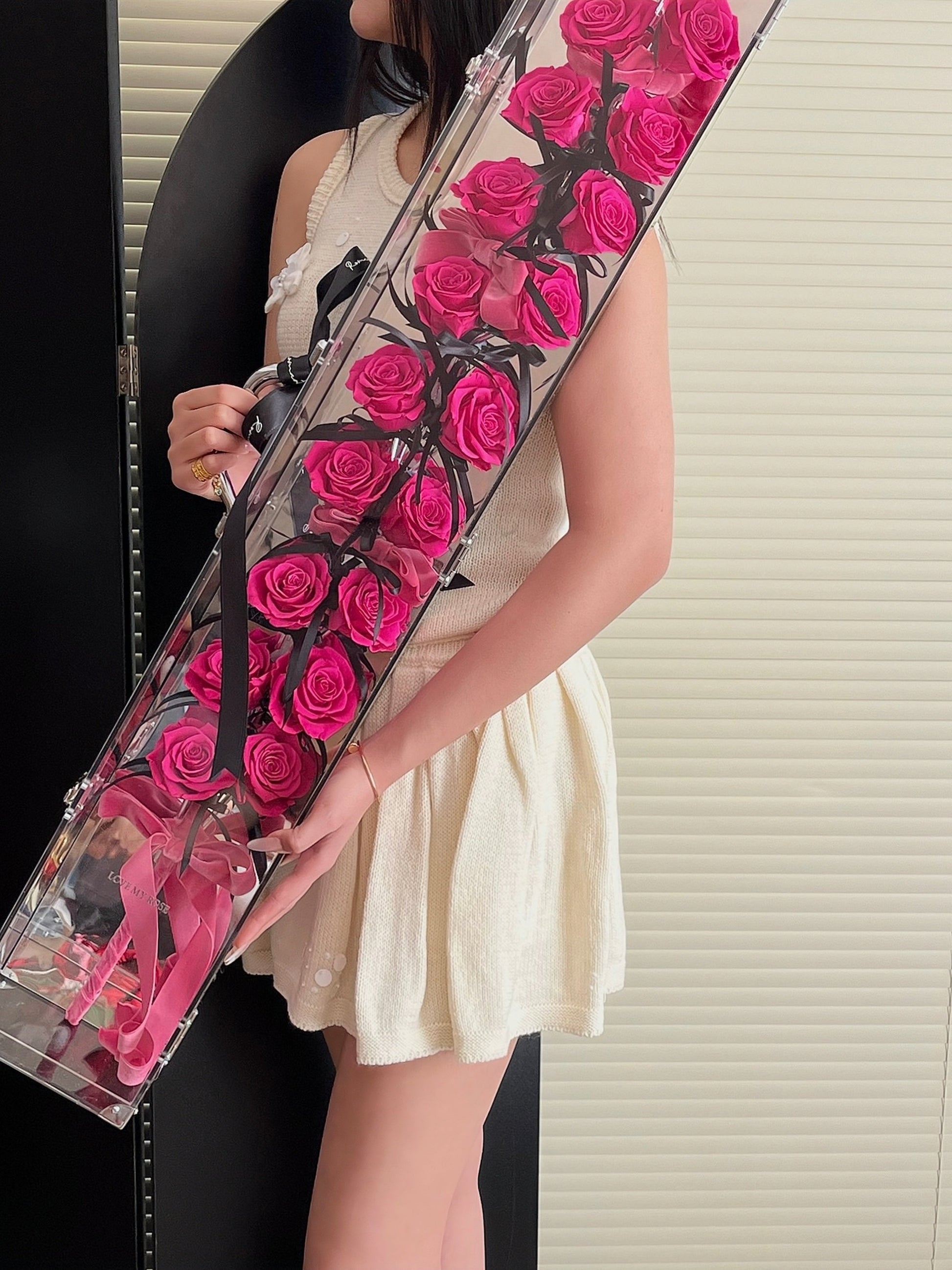 Acrylic gift box, everlasting rose gift box, candied haws bouquet, 19 large roses, pink Floyd red, plum jam