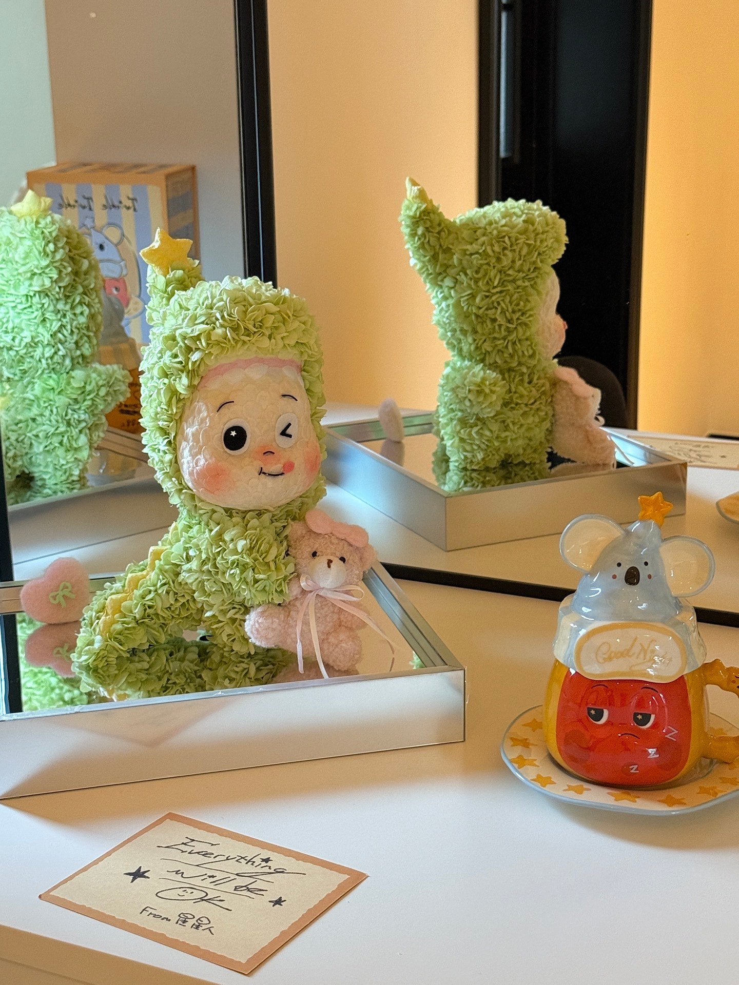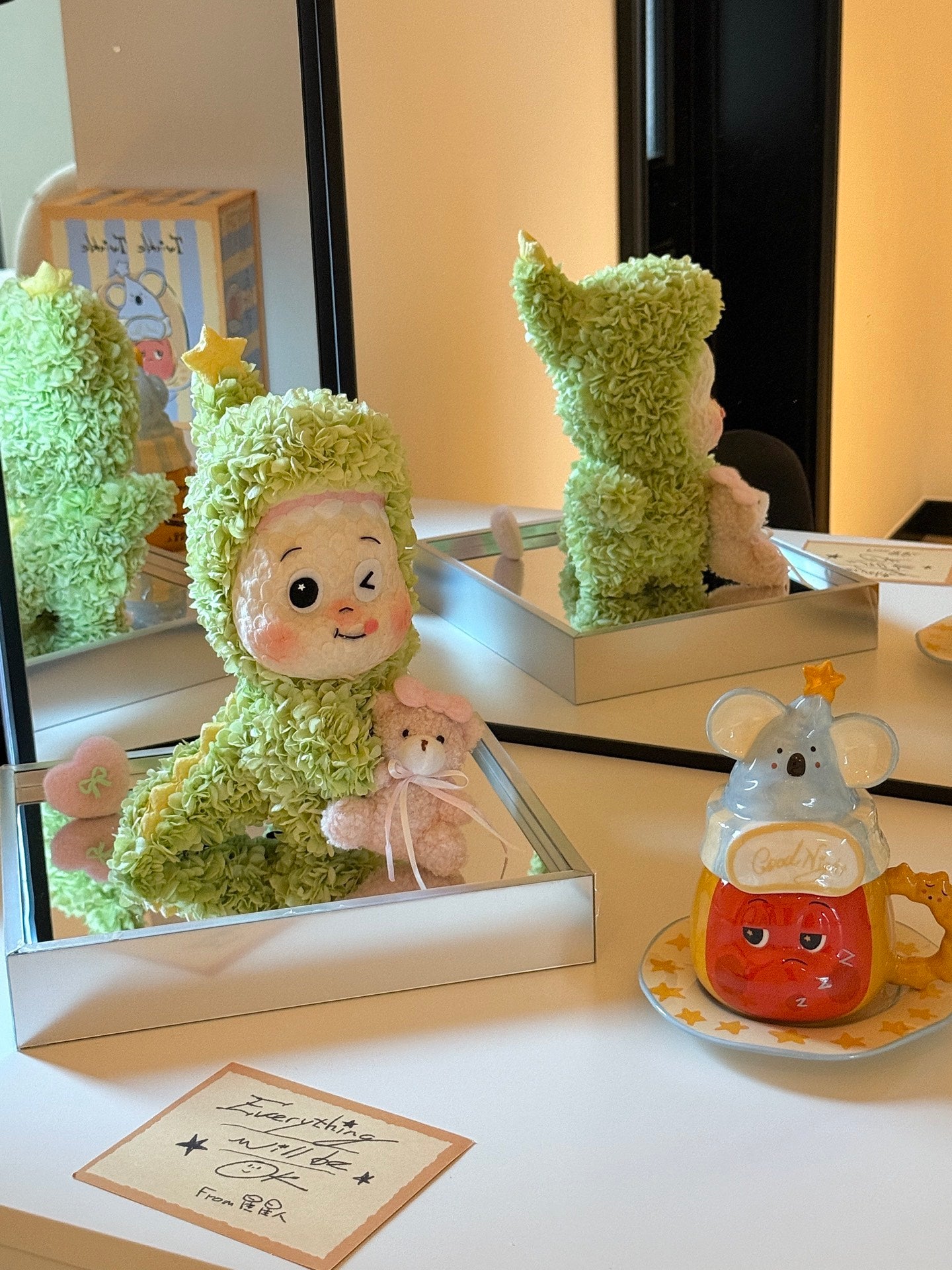Preserved Flower Little Dinosaur Star Man Doll Real Preserved Flower Ornaments for Girlfriend or Daughter's Birthday Gift