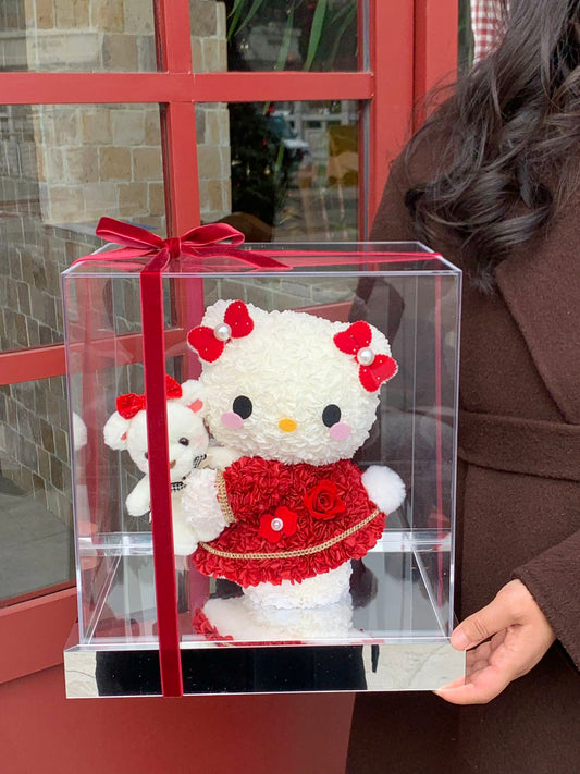 Cute Hello Kitty Doll with Preserved Bloom - Perpetual Floral Decoration, Great for Gifting to Family & Friends